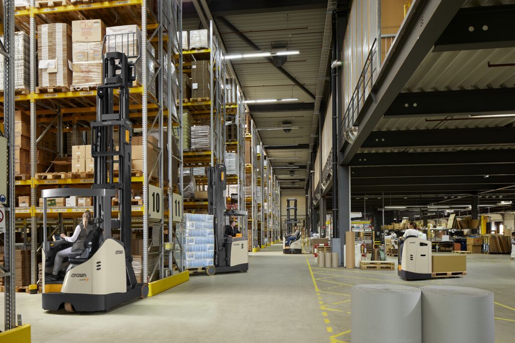Mit einem neuen Mastportfolio ermöglicht Crown einen weiteren Produktivitätsschub. Entscheidend ist die im Vergleich zu den Vorgängermodellen um bis zu 36 Prozent höhere Maststabilität. Die solide Konstruktion aus hochfestem Stahl ist besonders unempfindlich gegen Durchbiegung, so dass selbst geringe Schwankungen und Vibrationen fast nicht mehr wahrnehmbar sind. Unterstützt durch moderne Kameratechnologie optimiert die Mastkonstruktion mit abgewinkeltem Querträger die Sicht nach oben. Die neuen Masten ermöglichen somit schnellere Absetz- und Aufnahmevorgänge von schweren Lasten auch bei großen Regalhöhen von bis zu 14,2m. Selbst bei zwölf Metern Hubhöhe bieten die Hubgerüste beeindruckende Resttragfähigkeiten von bis zu 1.200kg. Bediener gewinnen mehr Vertrauen in die Handhabung und können in jeder Höhe flüssig, sicher und präzise arbeiten. Selbst geübte Bediener können ihre Umschlagleistung noch weiter steigern.