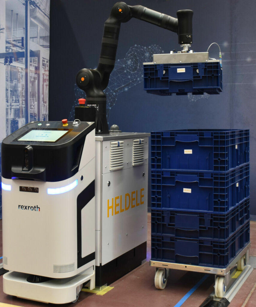 Hinter der Lösung steckt Heldele Automation, ein Certified Excellence Partner von Bosch Rexroth und Vertriebspartner von Kassow Robots,- seit 2022 ist Bosch Rexroth Mehrheitseigentümer des Cobot-Herstellers aus Kopenhagen, der zehn Modell von 7-Achsen Cobots zu seinem Portfolio zählt. Heldele setzt bei seiner Lösung mit dem KR810 einen dieser Leichtbauroboter ein und nutzt die intelligente Steuerung CtrlX Core von Bosch Rexroth. Die mobile Cobot Station eignet sich unter anderem für verschiedenste Applikationen in der Herstellung von Konsumgütern ebenso wie für andere Applikationen im Bereich B2B.