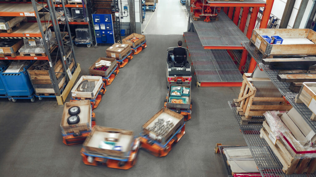 Aber auch Unternehmen, für die eine Steigerung ihrer Produktionstaktung kein aktuelles Thema ist, profitieren von dem Kapazitätsgewinn mit den neuen Rahmen von Still. Denn wenn ein Routenzug mehr Material mit einer Tour transportieren kann, bedeutet das im Umkehrschluss auch, dass er entsprechend seltener fahren muss, um die gleiche Menge vorkonfektionierter Einheiten an die Fertigungslinie zu liefern. Daraus resultiert die Einsparung wertvoller Energie- und Personalkosten einerseits sowie eine Verkehrsberuhigung andererseits. Und gerade die Minimierung des Verkehrs im Lager hat für viele Kunden hohe Priorität – zur Erhöhung der Sicherheit für Menschen, Fahrzeuge und Ladung, aber auch zur Steigerung von Effizienz und Produktivität. Das betont auch Routenzugexperte Herbert Fischer: „Letztlich sind jedes Fahrzeug und jede Person, die sich im Lager bewegen, ein Hindernis für alle anderen Verkehrsteilnehmer. Je weniger Fahrzeuge also im Lager und in der Produktion fahren, desto seltener müssen Fahrzeuge bremsen, ihre Fahrt unterbrechen und erneut beschleunigen – und desto weniger kann es zu Unfällen kommen. Und daher ist ganz klar: Je weniger, desto besser.“ Dies gilt zum einen für manuell betriebene Fahrzeuge – um ein Vielfaches höher ist die Bedeutung der Verkehrsreduzierung jedoch im Kontext automatisierter Logistikprozesse. Denn klar definierte Routen, freie und unverstellte Wege sowie eine sauber strukturierte Verkehrssteuerung gehören zu den wichtigsten Voraussetzungen eines reibungslosen, unfallfreien und effizienten Zusammenspiels automatisierter Fahrzeuge.