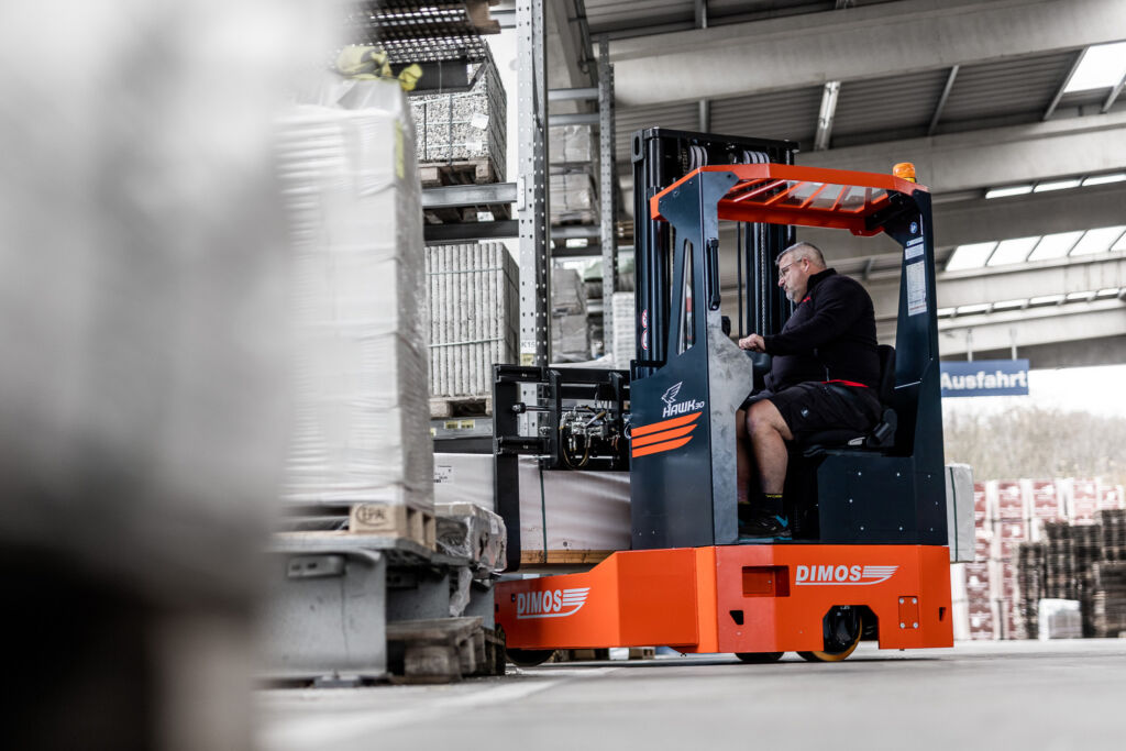 In modernen Lagern werden die Gänge immer schmaler, die Regale immer höher und die Warenabmessungen immer unterschiedlicher – dennoch müssen schwere Lasten effizient transportiert und gelagert werden. Hier kommt der Hawk von Dimos ins Spiel: Mit seiner flexiblen 360°-Endloslenkung erspart er zeit- und platzaufwändige Rangiermanöver und sorgt für höchste Effizienz beim Bewegen von Ladungen in alle Richtungen. Besonders im Baustoffhandel, im Stahl- und Holzhandel sowie bei Türen- und Fensterherstellern oder Unternehmen im Anlagen- und Maschinenbau zeigt der Hawk seine Stärken. Seine Vielseitigkeit macht ihn zum idealen Stapler für den Mischbetrieb, bei dem sowohl palettierte Lasten als auch Langgüter sicher seitwärts transportiert werden müssen.