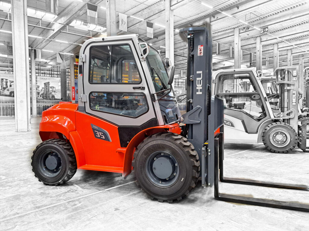 Heli, der siebgrößte Staplerhersteller der Welt, hat eine umfassende Baureihe an Geländestaplern für den europäischen Markt in seinem Angebot. Dieses kleine, aber feine Marktsegment wird insbesondere von Kunden im Bereich Veranstaltungstechnik, Bauwesen, Kommunen sowie Sägewerken genutzt. Und deswegen gibt es bei Heli aktuell Geländestapler mit Traglasten von 2.000 bis 5.000kg, jeweils bei 600mm Lastschwerpunktabstand. Der serienmäßige Duplex-Mast bietet 3.000mm Hubhöhe, Triplexmasten werden für Hubhöhen bis zu 6.000mm angeboten.