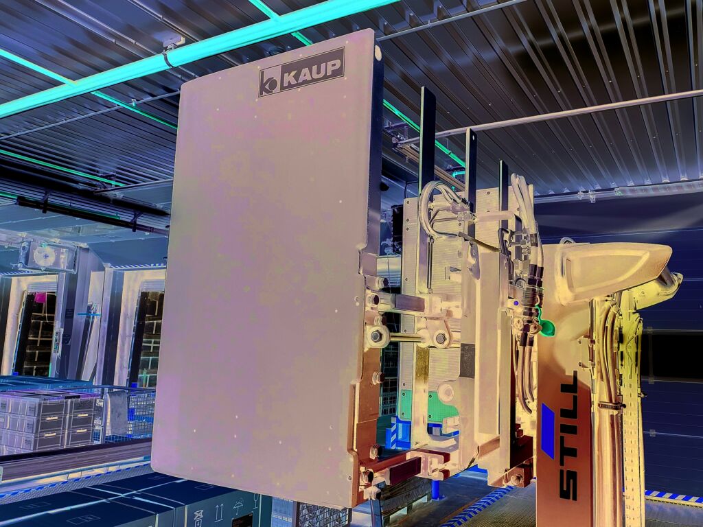 Das System greift nicht in die Staplerhydraulik ein und arbeitet energieeffizient. Staplerfahrende als Fehlerquelle werden eliminiert. Denn diese können die benötigte Klammerkraft nicht beeinflussen und gegebenenfalls die Ladung mit zu viel Kraft klammern. Das garantiert laut Kaup ein beschädigungsfreies Ladungshandling, sodass SLC hervorragend für den Transport von Hausgeräten geeignet ist. Und damit hat der Anbaugerätehersteller seinen langjährigen Kunden Miele überzeugt, der das System bereits an seinen deutschen Standorten einsetzt. Mit dem tschechischen Werk Uniov. wurde nun erstmals ein ausländischer Standort mit Kaup-Geräteklammern inkl. SLC ausgestattet. Genau genommen, kommen Teleskop-Geräteklammern 1.5T413GT mit einem Öffnungsbereich von 485mm bis 2.485mm für die Aufnahme einer oder mehrerer Haushaltsgeräte zum Einsatz, die mit Still-Elektrogabelstaplern der Baureihe RX 20-15 betrieben werden.