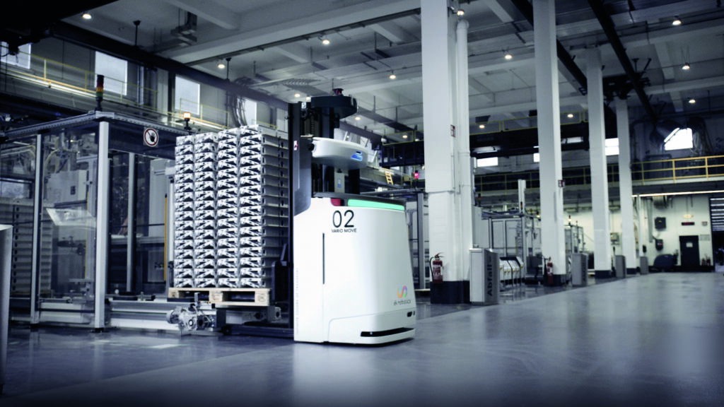 Präziser und sicherer Transport von Kunststoffbehältern und Baugruppen in einer hochautomatisierten Produktionsumgebung bei Sinit Kunstoffwerke.Bild: ek robotics GmbH