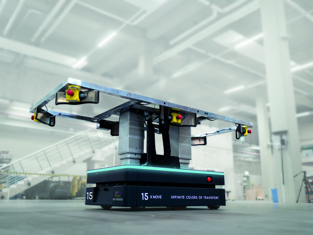 • maßangefertigte Transportroboter, die komplexe Intralogistikaufgaben bewältigen.