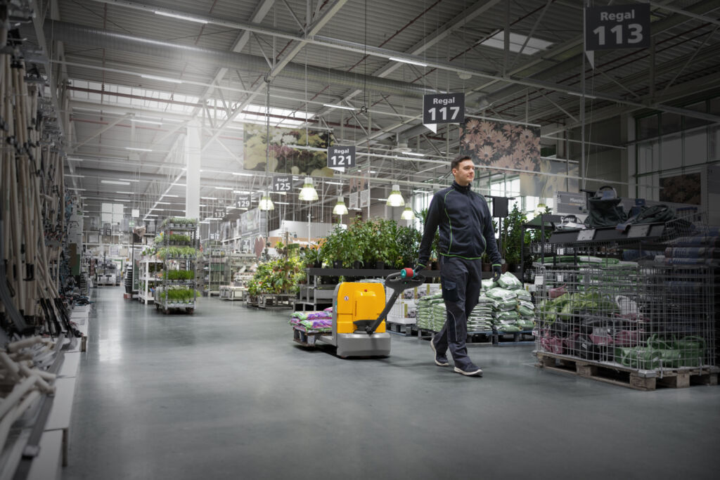 Mit einer Tragfähigkeit von 1.800kg, kompakten Abmessungen und geringem Eigengewicht eignet sich der AME 18 ideal für den täglichen Palettentransport – selbst in besonders engen oder gewichtssensiblen Einsatzbereichen wie Filialen, Produktionsstätten oder auf LKW-Ladeflächen. Die moderne Lithium-Ionen-Technologie sorgt für hohe Energieeffizienz und Verfügbarkeit. Dank integrierter Schnellladefunktion und wartungsfreiem Fahrmotor sind flexible Zwischenladungen möglich. Eine leere Batterie lässt sich mit einem Griff gegen eine geladene auswechseln – ein entscheidender Vorteil in zeitkritischen Logistikprozessen.