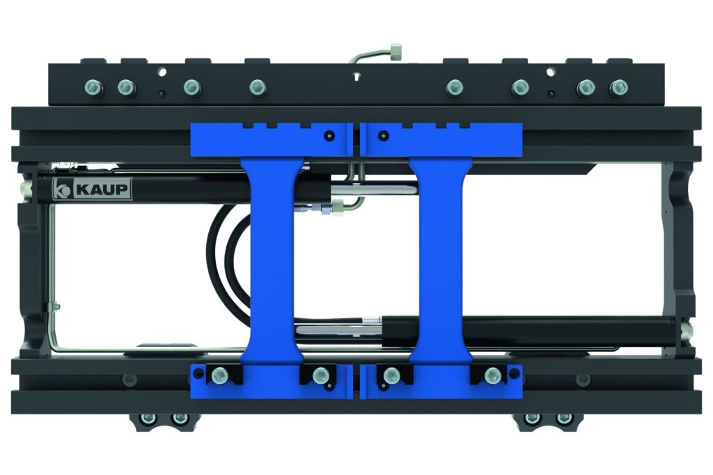 Die offizielle Premiere des am häufigsten produzierten Kaup-Zinkenverstellgeräts fand auf der diesjährigen Logimat statt. Seither trägt das T466 zusätzlich ein ‚C‘ im Namen. Es kennzeichnet die grundlegend überarbeitete, neueste Version des Erfolgsmodells. Mit dem tiefgreifenden Facelift wurden einige entscheidende Details umgesetzt. Das Offensichtlichste: Wesentlich bessere Sicht durch das Zinkenverstellgerät auf Gabeln und Ladung. Mehrere konstruktive Maßnahmen sorgen dafür. So ersetzen beispielsweise geschützt verlegte Rohrleitungen stellenweise die altbekannten Hydraulikschläuche. Auch der Wegfall des Stromteilerhalters ermöglicht eine verbesserte hydraulische Schlauchverlegung, mithin bessere Sicht.