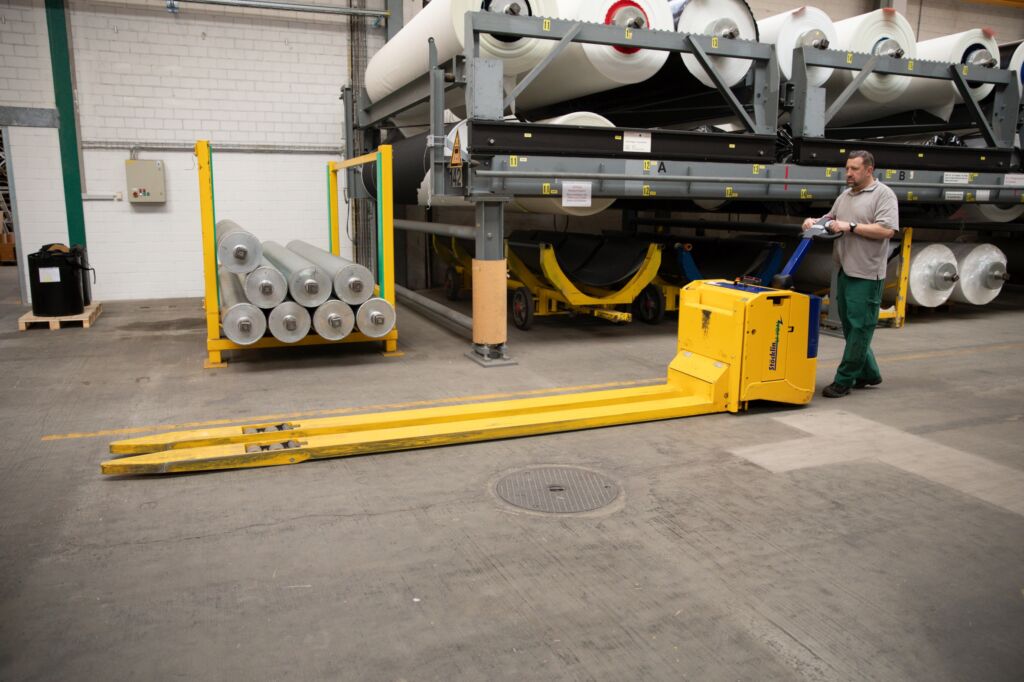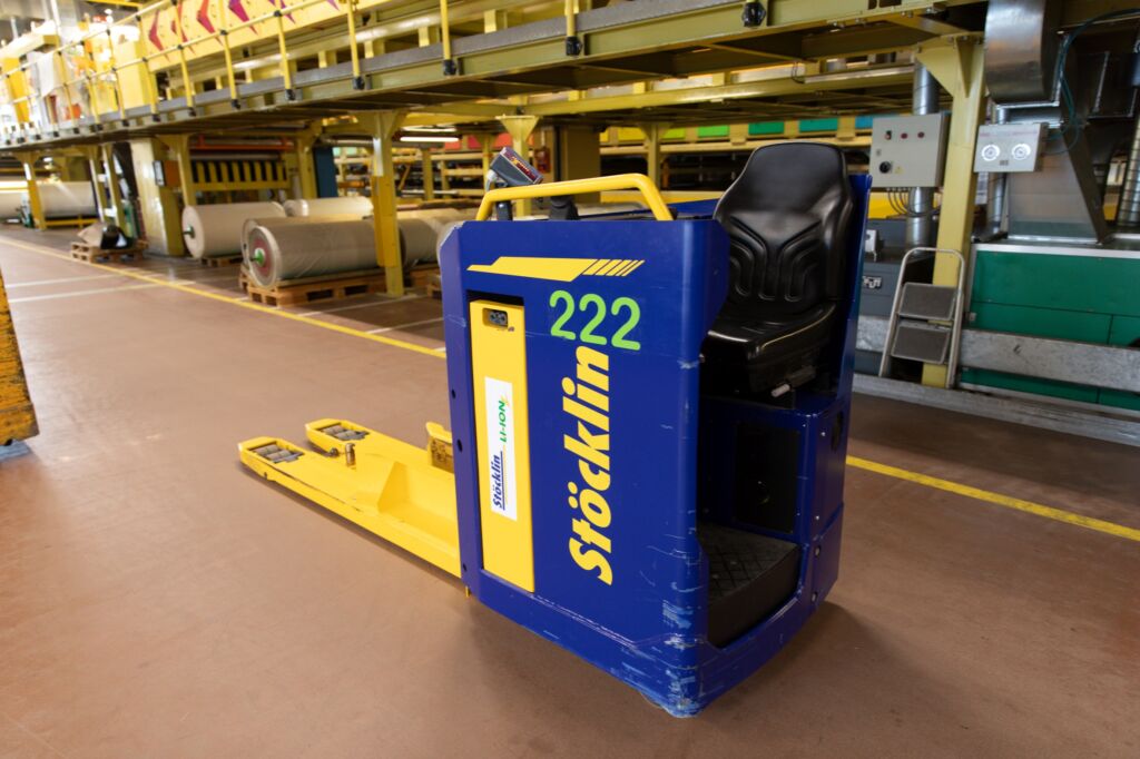 „Diese Geräte sind perfekt für unser großes Lager, wo wir 60l Fässer mit leicht entflammbaren, lösemittelhaltigen Pasten für die Kunststoffbeschichtungen unserer Bänder aufbewahren“, sagt Strebel. „Die jährlich rund 700t Durchsatz dürfen wir dort und auf den Transportwegen nur mit Ex-Zonen-konformem Gerät bewegen. Das hat Stöcklin im Portfolio.“