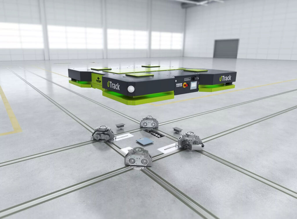 Mit einer Standardbauhöhe von 260mm ist uTrack ein äußerst kompaktes FTS, das die Ergonomie bei der Arbeit am und auf dem Fahrzeug verbessert. Diese außergewöhnlich flache Bauweise ist ein weltweites Alleinstellungsmerkmal des FTS. Eine sehr geringe Ausfallrate ermöglicht zudem eine hohe Produktionssicherheit von 99,8 Prozent. Dazu trägt unter anderem die geschlossene Kontur des Rundschienensystems bei, das im Gegensatz etwa zu konventionellen Schienen keine großen Fugen aufweist, zwischen die Schmutz fallen und den Transport behindern könnte. Doch selbst im äußerst seltenen Fall der Fälle ist eine Panne kein Beinbruch, wie Dominik Schaffrinski erklärt: „Fällt ein Fahrzeug aus, kann es innerhalb von fünf Minuten von dessen Antrieb entkoppelt und z.B. von einem Hilfs-Mover auf der Strecke gezogen werden. Bei geringeren Lasten können die Fahrzeuge sogar vom Personal von Station zu Station geschoben werden. Dank des geringen Reibungskoeffizienten kann eine einzelne Person bis zu fünf Tonnen bewegen.“ Das Ergebnis: Das FTF bleibt auf der Strecke, die Produktion kann abgeschlossen werden. Ausfallzeiten und -kosten werden damit auf ein Minimum reduziert.