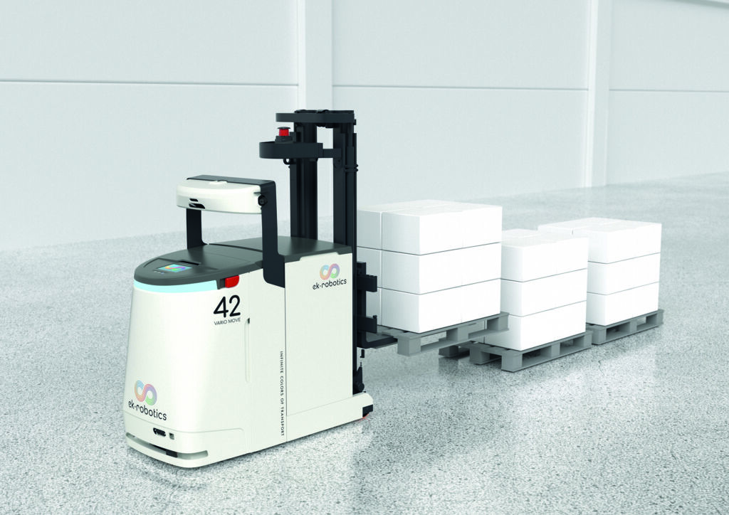 Das Unternehmen setzt bereits seit Jahren auf fahrerlose Transportsysteme (FTS) und hat sich 2023 für eine strategische Erweiterung und den Austausch veralteter Anlagen entschieden. Drei bestehende Systeme eines Wettbewerbers wurden durch leistungsstarke Transportroboter der Baureihe Heavy Move von EK Robotics ersetzt. Diese übernehmen heute die Ein- und Auslagerung an insgesamt sechs Sterilisationskammern, in denen empfindliche Medizinprodukte mit gasförmigen Sterilisationsmitteln behandelt werden. Dank vier Gabelzinken können die Fahrzeuge zwei Paletten gleichzeitig transportieren – ein entscheidender Vorteil für die Einhaltung der engen Taktzeiten im Sterilisationsprozess. Ergänzend wurde eine neue Anlage in Betrieb genommen, die die Schnittstellen zwischen Sterilisation, Nachkonditionierung und automatisierter Lagerung intelligent verknüpft.