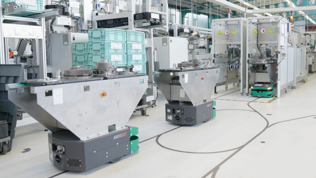 Handwagen adieu – unter diesem Motto hat die Motion Technology Company Schaeffler am Standort Herzogenaurach den Transport zwischen den Montagelinien für E-Achsen automatisiert. Mobile Transportroboter von Safelog optimieren Intralogistik und erhöhen den Durchsatz. Das Besondere: Die Steuerungssoftware für die mobilen Roboter hat Schaeffler Special Machinery, der interne Maschinenbauer von Schaeffler, selbst entwickelt.