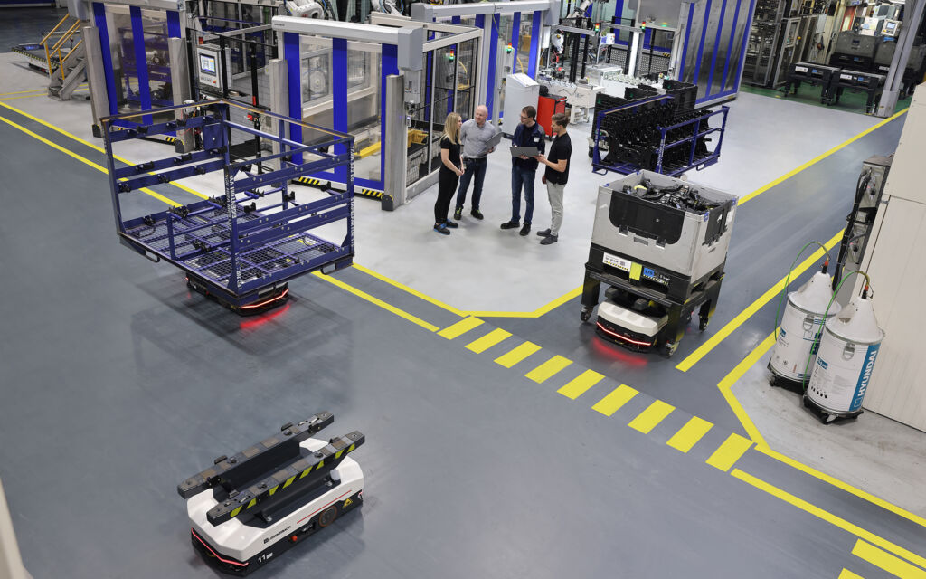 Die Benteler Gruppe ist ein Zulieferer für Fahrzeugkomponenten in der Automobilindustrie. Effiziente Materialplanung, ein zuverlässiger Materialfluss und die Digitalisierung der Wertschöpfungsprozesse sind essenziell für Benteler. Daher suchte die Gruppe eine automatisierte Lösung für die eigene Intralogistik. Ziel sollte es sein, innerhalb einer Produktionsstrecke verschiedene Anlagen und Prozesse miteinander zu verketten und Waren staplerfrei von A nach B transportieren zu können. Im Zuge dieses Projektes stand Benteler vor der Herausforderung, schwere Warenträger mit sehr großen Abmessungen auf engstem Raum zu transportieren.