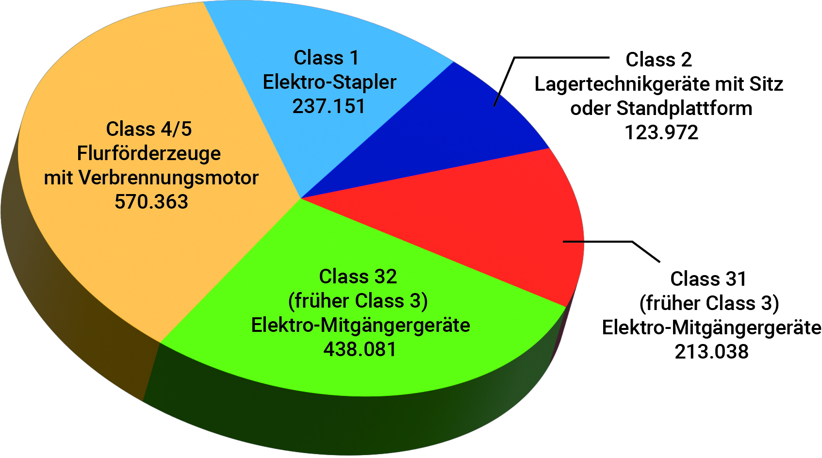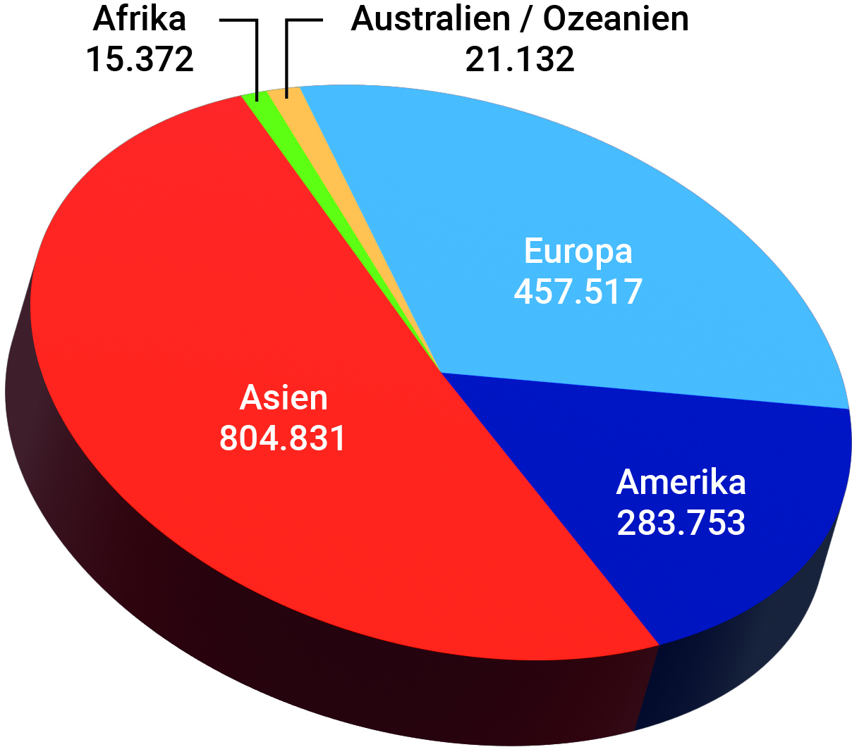 Da die Flurförderzeughersteller, wenn überhaupt, ihre Marktanteile nicht nach Werten, sondern stückzahlbezogen angeben, haben wir als Alternative dazu – auf Basis der in der Weltrangliste aufgeführten Umsätze – eine Tabelle mit den prozentualen Anteilen der wertmäßigen Erlöse aller beteiligten Unternehmen erstellt. Daraus hat sich eine Summe ergeben, die wir um eine sogenannte Dunkelziffer in Höhe von fünf Prozent ergänzt haben. Die auf diese Weise ermittelte Gesamtsumme dürfte annähernd der Größe des Weltmarkts entsprechen. Aufgrund der Berechnung der Anteile nach wertmäßigen Umsätzen beleuchten wir den Markt zusätzlich aus einer anderen Perspektive. Ein wichtiger Ansatz, zumal der Durchschnittspreis einzelner Flurförderzeuge von wenigen hundert Euro, etwa für einen Handgabelhubwagen, bis zu rund einer Million Euro für einen Reachstacker differieren kann.