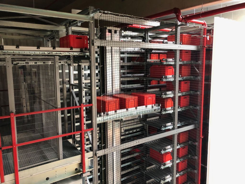 Das neue Projekt erstreckte sich über zwei Bauphasen. In der ersten erfolgte die Shuttle-Inbetriebnahme autark mit Anbindung an zwei Arbeitsplätze. In der zweiten Phase erfolgte die vollumfängliche Inbetriebnahme mit Anbindung des automatischen Kleinteile- und des Shuttle-Lagers sowie der weiteren Arbeitsplätze an das Lagerverwaltungssystem. Das neue Shuttle-Lager, welches das bestehende automatische Kleinteillager ergänzt, besteht aus 25 Ebenen und 9.000 Behälter-Stellplätzen. Die 25 Shuttle sowie der Ein- und Auslagerlift wurden dabei direkt an das SAP EWM angebunden. In der ersten Bauphase stellte Körber sicher, dass sich Lieferungen gleichmäßig auf Bestandsanlage und den neu entstandenen Shuttlebereich verteilen und weitestgehend unabhängig bearbeitet werden konnten. Erst in der zweiten Phase wurde die Bestandsanlage umgebaut und an den Fördertechnikkreisel des Shuttle-Lagers angeschlossen. Damit wurde die Synchronisation der beiden Lagerbereiche als zentrale Herausforderung gemeinsam gemeistert.