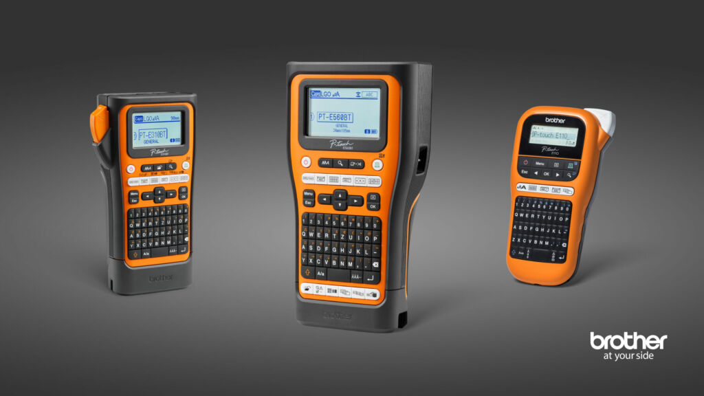 Um die Medien zu bedrucken, bietet Brother ein umfangreiches Portfolio an Beschriftungsgeräten der Serie P-Touch. Dieses reicht über das Einsteigergerät PT-E110, das Bänder bis zu 12mm Breite bedrucken kann, über das PT-E310 für Bänder bis 18mm bis hin zum PT-E560 für Bänder bis 24mm. Das Einsteigergerät ist für Anwender geeignet, die nur gelegentlich eine einfache Beschriftung erstellen müssen und diese dann über die Tastatur eingeben. Die beiden anderen Beschriftungsgeräte haben unter anderem eine Bluetooth-Schnittstelle, die eine komfortable Bedienung über die Pro Label Tool App von Brother ermöglicht. Dort lassen sich eigene Beschriftungen erstellen, abspeichern und wiederverwenden. Aber auch bei diesen Geräten ist eine Eingabe über die Tastatur möglich. Sie verfügen außerdem über spezielle Funktionen zur Erzeugung von 2D-Barcodes und QR-Codes sowie zur schnellen Schaltschrankbeschriftung. Alle P-Touch-Geräte haben ein gut ablesbares Display und können zusammen mit den Bändern in einem praktischen Koffer verstaut werden. Weitere Informationen über die P-Touch-Modelle und die passenden Schriftbänder finden sich auf der Website.