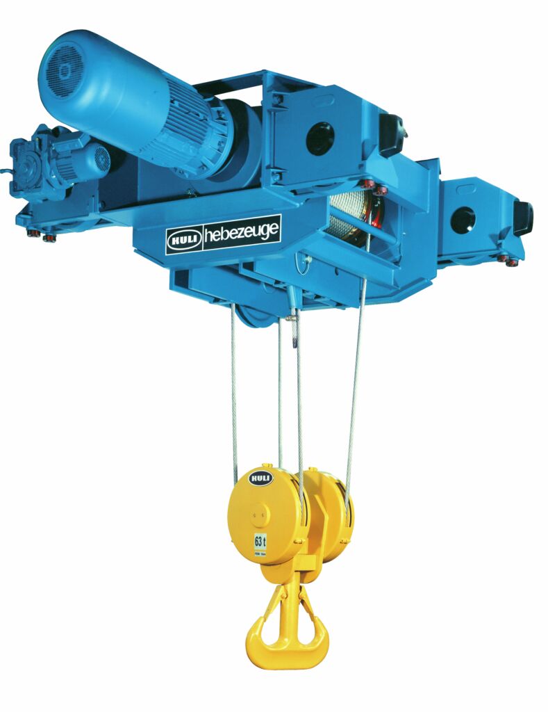Als Top-Produkt präsentierte Kuli Hebezeuge auf der Logimat in Stuttgart einen Elektroseilzug der Baureihe RS mit einer Hubhöhe von 13,5m und einer Tragfähigkeit von 63t in 4-strängiger Ausführung, der die Sonderstellung von Kuli auf dem Markt unterstreicht. Der Elektroseilzug besticht mit robustem Design, innovativer Technik, Langlebig- und Wartungsfreundlichkeit und kommt in verschiedenen Branchen, in denen solch enormen Lasten bewegt werden müssen, zum Einsatz. Der gleiche Zug wird oft auch als 6-Stränger bis 95t oder in der Zwillingsausführung sogar für 125t Traglast eingesetzt. Und das alles mit Kuli Standardkomponenten.
