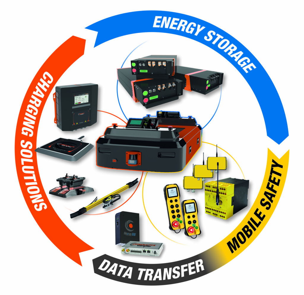 Der WirelessCharger 3.0 bietet Kunden eine induktive Energieübertragung und somit berührungslose, automatisierte Gelegenheitsladung. Auch über Ladekontakte der Serien Nano+ oder Enduro+ kann die Energieversorgung der Energiespeicher sichergestellt werden. Das konduktive Ladegerät, der Kontakt Charger, mit skalierbaren Spannungen und Leistungsstufen, ist die ideale Ergänzung zu den angebotenen Ladekontakten und auch Charge Line 0865 Ladesegmenten auf Basis einer zweipoligen Schleifleitung. Mit Battery Block SB bietet Conductix-Wampfler den dazu passenden, skalierbaren Energiespeicher für mobile Roboter an, der perfekt auf die berührungslose oder kontaktierende Ladetechnik abgestimmt ist.