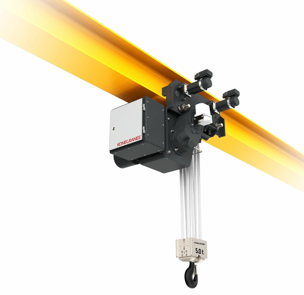 Der Konecranes Bandzug ist jetzt in den Baugrößen 2 und 5 für einen Traglastbereich von 500 bis zu 5000kg erhältlich und verfügt über viele optionale Komponenten aus Edelstahl, wie z.B. einem Edelstahlgehäuse, einem Edelstahlhaken oder einer Hakenflasche, die leicht mit einem Hochdruckreiniger gereinigt werden können. Hochfeste Polyamid- oder auch Edelstahl-Umlenkrollen mit komplett abgedichteten Lagern sorgen für eine zuverlässige Führung des Bandes. Mit einem Motorüberhitzungsschutz, einer elektrisch isolierten Hakenflasche, einem mechanischen Überlastschalter sowie Absturzsicherungen für die Fahrwerke gewährleistet dieser Zug maximale Sicherheit, unabhängig von der Anwendung. Er lässt sich einfach auf einer Vielzahl von Hebesystemen installieren, wie zum Beispiel Brückenkrane, Hallenkrane, Schwenkkrane, Konecranes KBK-Arbeitsplatz-Kransysteme, Einschienenbahnen und stationäre Anwendungen.