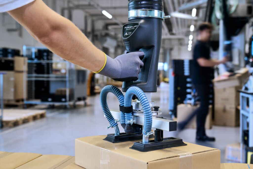 Damit bieten die Geräte ideale Lösungen für vielfältige Einsatzbereiche in Verpackungsprozessen, Lagerlogistik und innerbetrieblichen Materialflüssen. Dank intuitiver Bedienung, Schnellwechselkupplung und modularer Bauweise eignet sich der Force-Lift für unterschiedlichste Lasten – von Kartons über Fässer bis hin zu Kanistern.