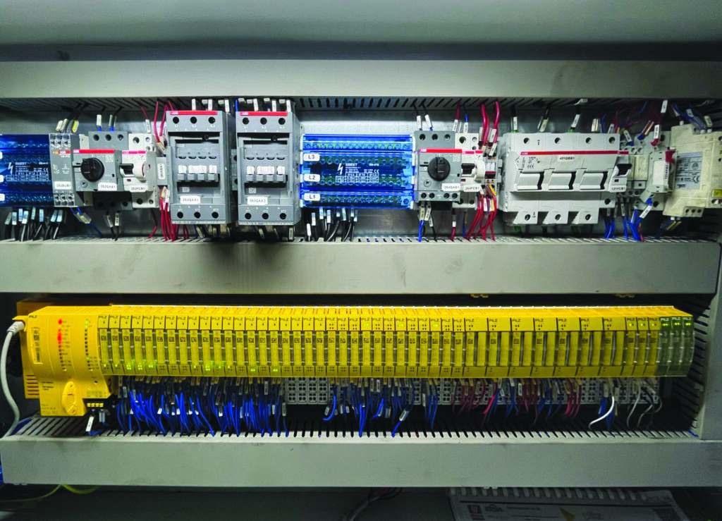 Die Sicherheit fährt mit: Neuer Schaltschrank mit dem Automatisierungssystem PSS 4000 und den E/A Modulen an Bord bei Marelli Mako.Bild: Marelli Mako