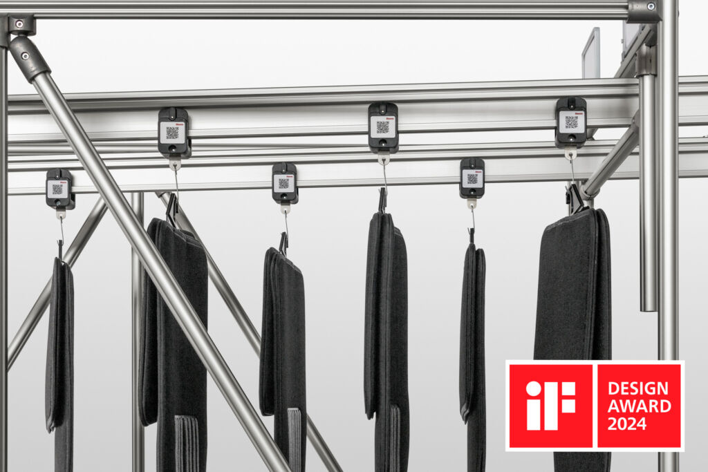 10.800 Bewerbungen aus 72 Ländern – der iF Design Award gehört zu den renommiertesten und wichtigsten Designwettbewerben der Welt. Jedes Jahr steigt die Teilnehmerzahl, doch nur die hochwertigsten Arbeiten werden prämiert. Dazu müssen die Produkte ein strenges, zweistufiges Auswahlverfahren durchlaufen und vor einer internationalen Jury bestehen. Im Jahr 2024 gehört auch Item wieder zu den Gewinnern. Ausgezeichnet wurde das Hängefördersystem. Es ermöglicht eine besonders effiziente Bereitstellung von Materialien, die aufgrund ihrer unregelmäßigen Form besser hängend über eine Förderstrecke bewegt werden. Das Hängefördersystem ist kostengünstig, flexibel einsetzbar sowie platzsparend und stellt damit eine überzeugende Alternative zum Transportieren in Kleinladungsträgern dar.