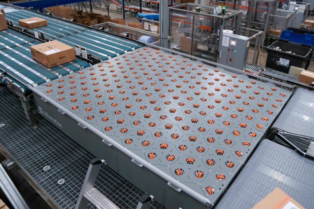 Dabei setzt DHL auf den Celluveyor Crossdock von Cellumation. Auf einer Fläche von nur 2,7m² fördert die Anlage 3.500 Pakete pro Stunde.