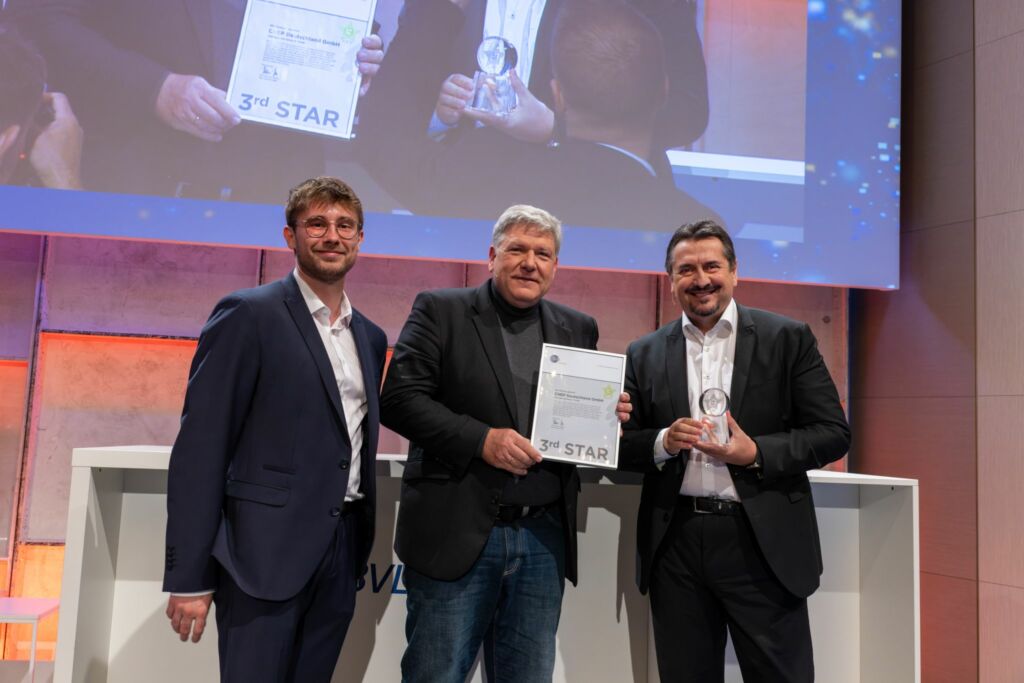 Bei der Preisverleihung des Lean & Green 3rd Star an Chep standen Aljoscha Rix und Thomas Fell von GS1 Germany sowie Kai Derda von Chep Deutschland (v.r.n.l.) im Rampenlicht.
