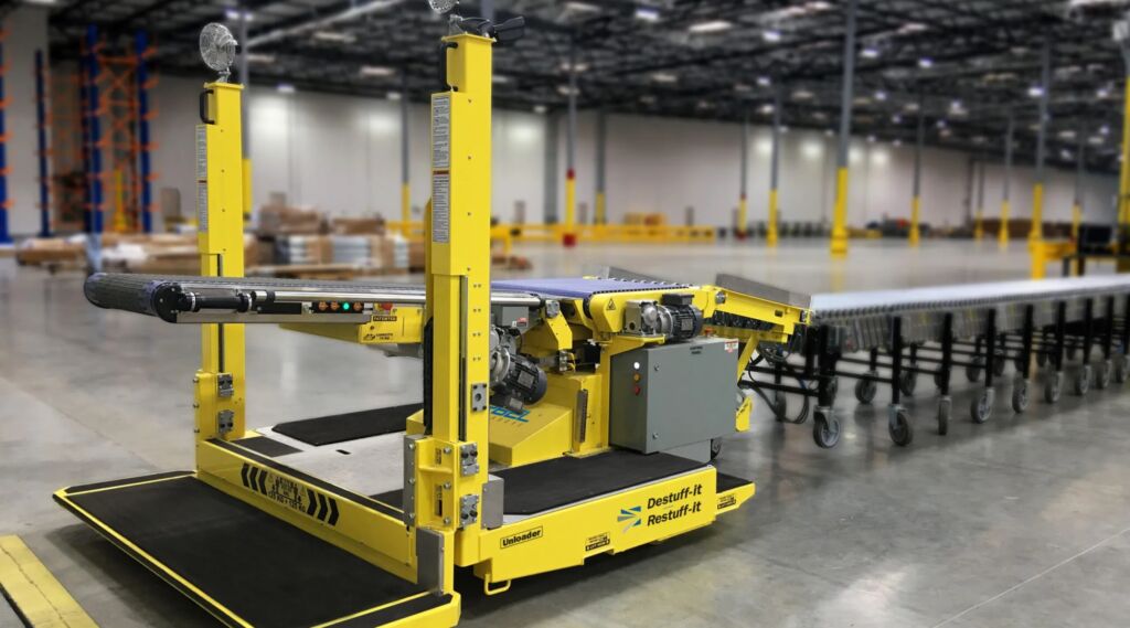 Im Mittelpunkt des Produktportfolios stehen dabei Scherenrollenbahnen, die die Packstücke mit unebener und empfindlicher Oberfläche, verschiedenster Größen und Gewichte durch das Lager bis zu den Fahrzeugen befördern. Zum Einsatz kommen sie zudem in Verpackungszonen, bei der Maschinenvernetzung und bei Cross-Docking-Anwendungen. Logistikverantwortliche profitieren dabei von der großen Vielseitigkeit der mobilen Förderer, die sich durch einfaches Verschieben und ohne Umbau flexibel einsetzen lassen. Bei Nichtgebrauch werden sie einfach auf ein Drittel ihrer Länge eingeschoben und platzsparend verstaut.