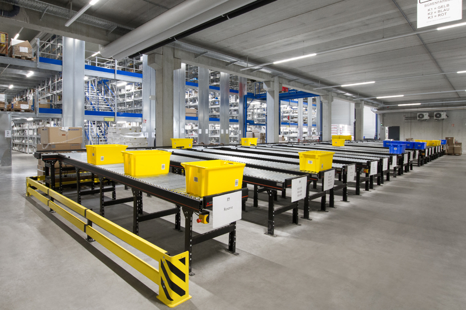 Kleinteile-Kommissionierung bei Sanitär-Heinze: Automatisierte Fördertechnik über mehrere Stockwerke
