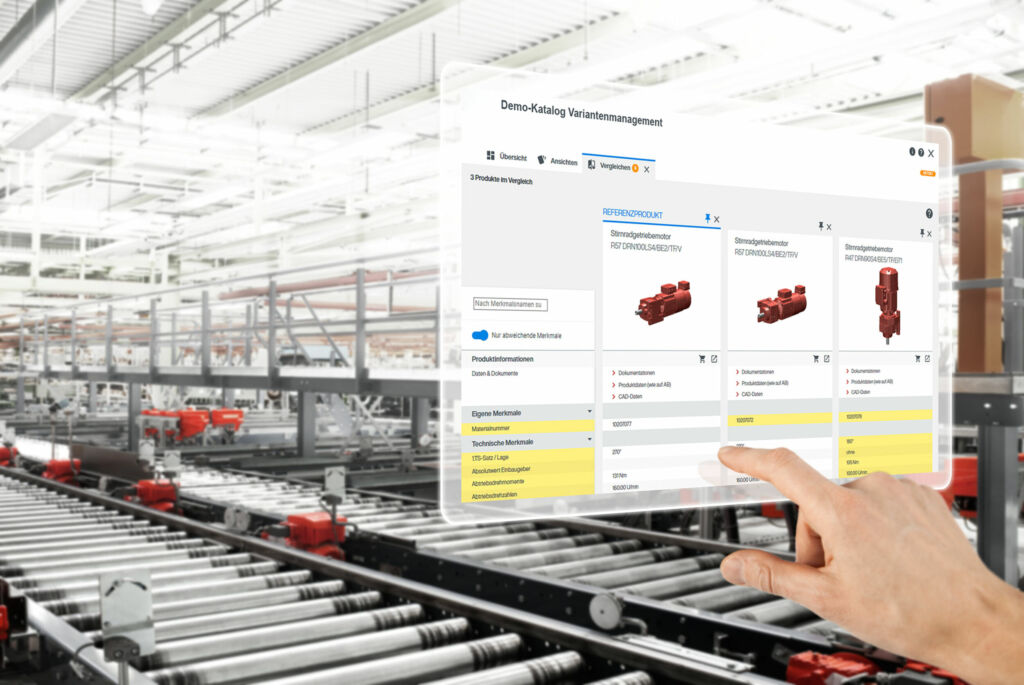 Das Variantenmanagement vereinfacht die Arbeitsweise der Kunden. Im elektronischen Katalog kann mit Hilfe von umfangreichen Filtern und Vergleichsmöglichkeiten ein passender Antrieb gefunden werden. Tischler erläutert: „Auch bei Produkten anderer Hersteller, die der Kunde ersetzen möchte, geht er ins Variantenmanagement und prüft auf Basis von technischen Merkmalen wie Einbaulage, Drehzahl und Leistung, ob schon ein passendes SEW-Produkt vorhanden ist. Dann sendet er uns über das Variantenmanagement eine Angebotsanfrage mit der Materialnummer. Aufgrund der guten Erfahrungen mit dem Variantenmanagement kauft der Flughafen München bei uns die passenden Antriebe.“