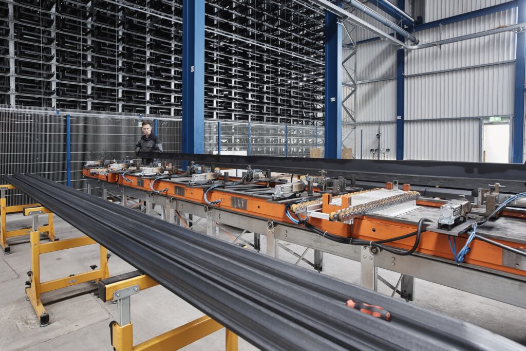 Aber auch für Neuinstallationen von automatischen Langgutlagern des Typs Unicompact bietet Kasto eine umweltfreundliche Lösung. Mit der mobilen Kassettenfertigung Kasto Weld produziert das Unternehmen direkt vor Ort robotergestützt die voluminösen Ladungsträger in hoher und zertifizierter Qualität. Dadurch können viele Lkw-Transporte entfallen, die andernfalls aufgrund der ausladenden Kassetten erforderlich wären. Die Fertigungsanlage ist in der Regel innerhalb von zwei Wochen betriebsbereit. Sie schweißt aus bereitgestelltem Rohmaterial die Kassetten und beschichtet sie mit einem Korrosionsschutzöl. „Als Kasto uns diese Lösung präsentierte, waren wir begeistert. Wir sparten damit erhebliche Frachtkosten ein und verringerten die Umweltbelastung um rund 23t CO2. Außerdem mussten wir uns nicht selbst um das Einlagern der Kassetten kümmern und konnten das Lager schon nach kurzer Zeit nutzen“, berichtet Felix Kern, Assistent der Geschäftsleitung bei VBE. Vereinigte Baustoff- und Eisen (VBE) bietet als Stahlhandelspartner in der Metropolregion Rhein-Neckar ein umfangreiches Sortiment an Stabstahl und Blechen, Formstahl, Rohren, Bauelementen und Betonstahl.