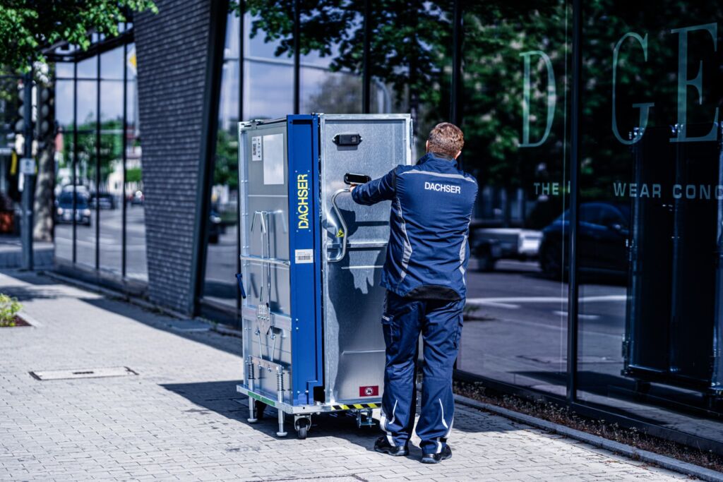 Die Mustercontainer durchliefen eine intensive Testphase bei Modeherstellern und im Dachser Netzwerk. Im Fokus standen die optimale Platznutzung sowohl im Rollcontainer als auch im LKW, der reibungslose Be- und Entladungsprozess sowie das effiziente Handling für die Mitarbeiter. Dabei wurden die Rollcontainer auch einem Belastungstest über Bordsteine, Pflastersteine und Aufzüge hinweg unterzogen. Die Ausstattung mit Rollen mit Elastiklauffläche bewährte sich ebenso wie die praktische Faltfunktion, die platzsparendes Lagern ermöglicht. Auch die befragten Mitarbeiter vor Ort zeigten sich überzeugt: einfache Handhabung, weniger Aufwand und ein klarer Mehrwert im Tagesgeschäft. Nach den erfolgreichen Praxistests wurden die zwei Varianten im Markt eingeführt: die größere Retail Box Classic mit den Abmessungen 1.200x800x1.900mm, einem Eigengewicht von rund 144kg und einer maximalen Nutzlast von 500kg sowie die kompaktere Retail Box Small mit 600x800x1.900mm, etwa 70kg Eigengewicht und einer Tragfähigkeit von 400kg. Beide Systeme sind vollständig zu schließende Rollcontainer aus Metall, die sich schnell und intuitiv auf- und zusammenfalten lassen.