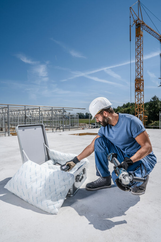 Power-Tools sind aus dem Unternehmensalltag nicht mehr wegzudenken. Damit deren Lithiumbatterien kein Sicherheitsrisiko darstellen, eignet sich die Zarges Transportbox Akku Safe für die Lagerung und Logistik selbst kritisch beschädigter Akkus.Bild: ZARGES GmbH