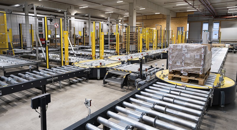 Vier zentrale Kommissionierstationen sind über Fördertechnik und Verteilerwagen direkt an das Hochregallager und an AutoStore® angeschlossen. So kann an jedem Arbeitsplatz sowohl Palettenware als auch Ware aus AutoStore® kommissioniert werden.