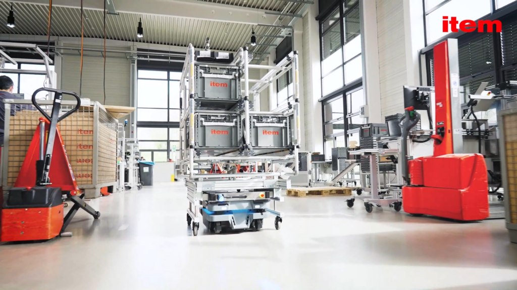Auch wenn Projekte ausführlich geplant werden, ergeben sich häufig noch Änderungen oder Anpassungen der Prozesse. Daher sollten die Transportsysteme über ein gewisses Maß an Flexibilität verfügen. Das betrifft vor allem die Hilfsmittel, mit denen Produkte oder Komponenten sicher und zuverlässig von A nach B transportiert werden sollen. Paletten, Gitterboxen, Regale oder sonstige Aufbauten müssen stabil und für das Transportgut geeignet sein. Auch muss das gesamte System den technischen Vorgaben des AGV-Herstellers entsprechen. Starre, geschweißte Transportgestelle sind als Hilfsmittel weniger geeignet, da sie sich nicht an Veränderungen anpassen lassen. Ändert sich beispielsweise das Transportgut, muss ein neues Gestell geschweißt werden. Wird ein fahrerloses Transportfahrzeug (FTF) eines anderen Herstellers eingesetzt, kann das geschweißte System ebenfalls nicht mehr verwendet werden, da es höchstwahrscheinlich nicht die Vorgaben des neuen Fahrzeugherstellers erfüllt. Vorteile bietet da ein modulares System mit Komponenten, die miteinander kompatibel sind. „Die mobilen Roboter unterscheiden sich nicht nur hinsichtlich ihrer Sensorik, ihrer Abmessungen oder ihres Andockmechanismus, sondern auch hinsichtlich ihrer Funktion und ihres Einsatzbereiches – mal werden sie zum Kommissionieren eingesetzt, dann wieder zum Transportieren“, erklärt Hannes Fröhlich. „Wir haben uns eingehend mit der Thematik befasst und eine Transportlösung entwickelt, die aus einem standardisierten Base Cart und perfekt darauf abgestimmten, variabel konfigurierbaren Top Modulen besteht.“ Die Base Carts sind Basiswagen, die mit verschiedenen Fahrzeugmodellen unterschiedlicher Hersteller kompatibel sind. Diese Basiswagen gibt es in verschiedenen Ausführungen und Varianten, welche die Vorgaben der Fahrzeughersteller optimal erfüllen. Die Konstruktion ist dabei an die Abmaße von Europaletten angepasst und bietet eine Standardschnittstelle zu den sogenannten Top Modulen. Diese Aufbauten sind künftig als vorgefertigte Musterlösungen für unterschiedliche Einsatzbereiche verfügbar. Sie alle haben die Maße der Europalette als Grundfläche und passen damit perfekt zum Basiswagen. Sollen die Aufsätze fest mit dem Transportroboter verbunden werden, bietet Item auch dafür eine Lösung. Als Aufbauten stehen beispielsweise Kommissionierregale mit mehreren Ebenen, Transportvorrichtungen für KLT sowie komplette Montageaufsätze zur Verfügung. Der Anwender kann die Aufbauten aber auch individuell konfigurieren und dabei aus dem umfangreichen Systembaukasten von Item schöpfen. „Damit bieten wir nicht nur einen standardisierten Basiswagen, sondern auch ein Maximum an Flexibilität“, erklärt Hannes Fröhlich. „Der Kunde kann die Aufbauten ideal den Anforderungen anpassen und bei Bedarf schnell und einfach abändern.“
