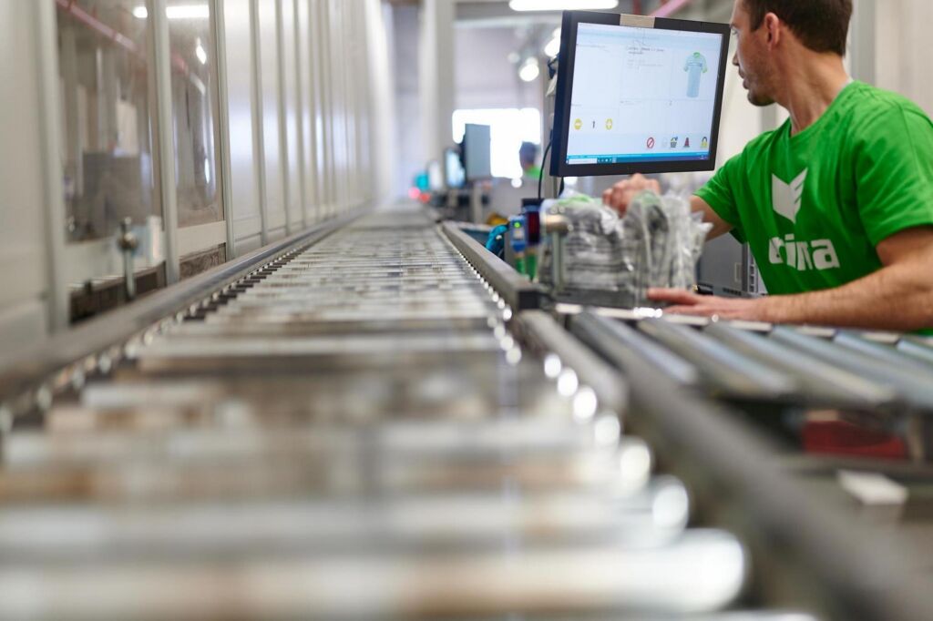 In der zweigeschossigen AutoStore-Anlage von Erima lagern über 3,5 Millionen Artikel, die an den Carousel-Ports kommissioniert und per Fördertechnik automatisch abtransportiert werden.