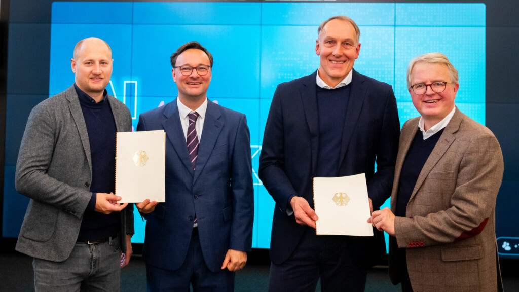 „Es wird zukünftig darum gehen, Technologien zu verbinden und neue Geschäftsmodelle abzuleiten. Die KI- und Blockchain-Komponenten, die in SKALA in Form von Softwarebausteinen, KI-Modellen, Smart Contracts und Adaptern zur Anbindung von Drittsystemen als Open Source entwickelt werden, bieten die einzigartige Möglichkeit, schnell und effizient De-facto-Standards für eine Technologiekonvergenz zu schaffen und zu verbreiten, wie es für einzelne Unternehmen nicht möglich wäre“, betonte Prof. Michael Henke, geschäftsführender Institutsleiter des Fraunhofer IML, bei der Förderbescheidübergabe am 5. November in Berlin.