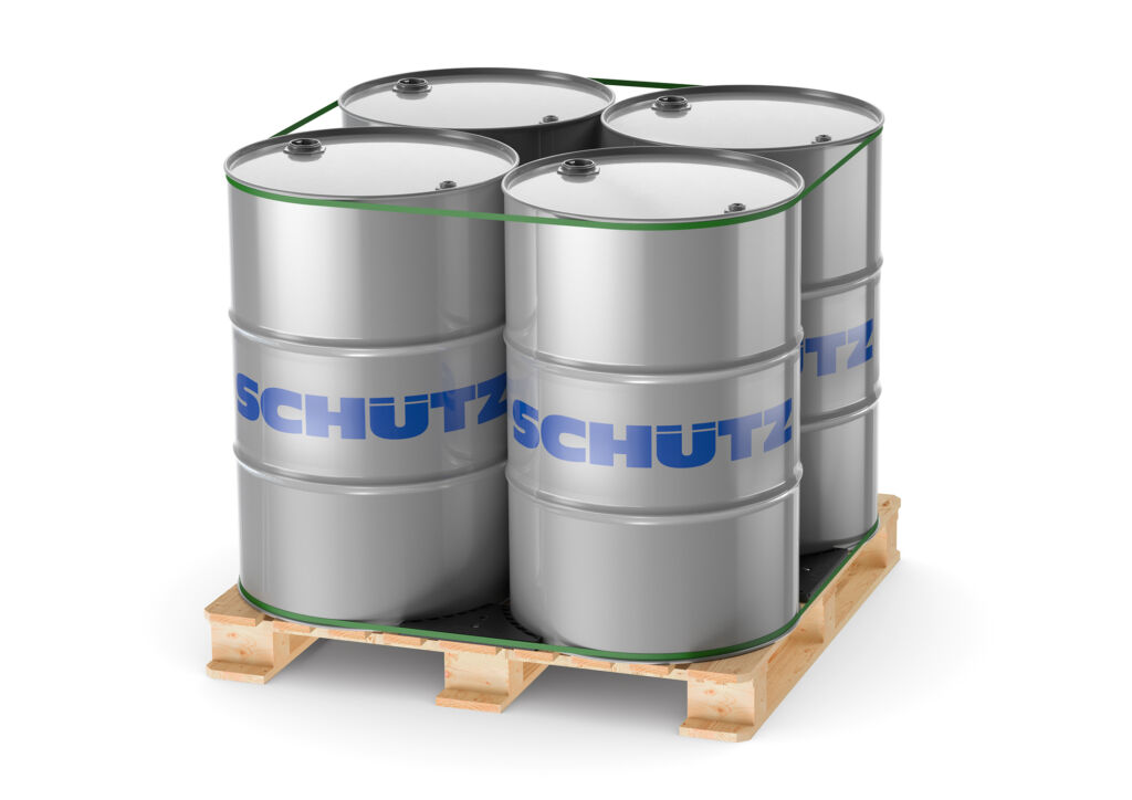 Mit Schütz Drumfix steht dem Anwender ein zuverlässiges, einfaches, kostengünstiges und umweltfreundliches System zur Ladungssicherung von Stahlfässern mit Spund zur Verfügung. Denn eine gute Verpackung ist entscheidend dafür, dass ein Produkt unbeschadet an seinem Bestimmungsort ankommt. Transportsicherungen sorgen zusätzlich dafür, dass unterwegs nichts kippt oder verrutscht. Speziell für den Transport von Stahlfässern mit Spund entwickelt, lassen sich mit dem Schütz Drumfix System aus vier Fässern und einer Palette schnell, einfach und umweltfreundlich sichere Ladeeinheiten bilden. Mit Spezialschrauben werden die Drumfix-Elemente in nur 20 Sekunden formschlüssig auf der Palette befestigt und greifen dabei in den unteren Falz der Fässer. Zwei zusätzliche Umreifungsbänder im oberen und unteren Bereich sorgen dafür, dass die Fässer sowohl im gefüllten als auch im leeren Zustand optimal gesichert sind. Selbst unter extremen Testbedingungen, wie einer Neigung der Palette von bis zu 45°, bleibt Schütz Drumfix stabil. Darüber hinaus kann die Ladeeinheit wie gewohnt gestapelt werden, was den Transport und das Handling im Abfüllbetrieb erheblich erleichtert.